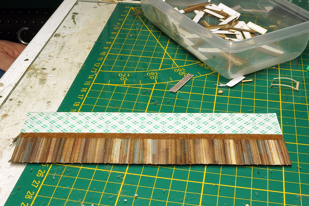 Dit zijn kleine geprinte strips golfplaten , die ik met transfer tape bevestigd heb , daarna met de markers van Action wat minder fel heb gemaakt en straks ook nog met poeders bewerkt worden , maar dat is voor morgen.