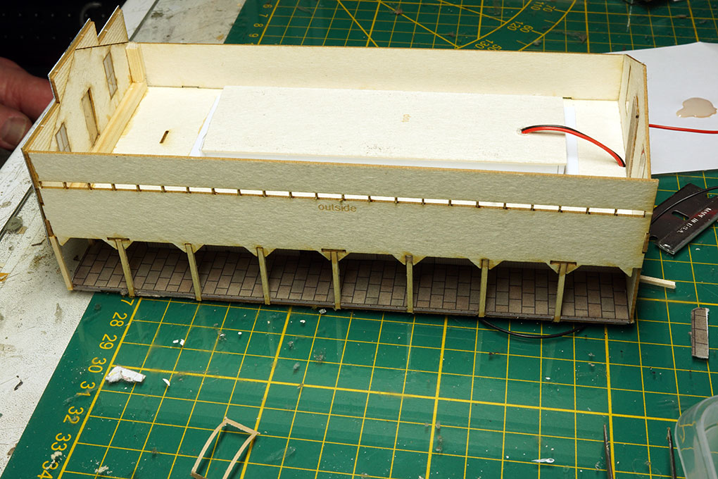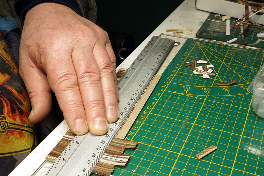 Verder met de palen voor de veranda, schaal hout en een malletje voor de maat in de kit er bij.